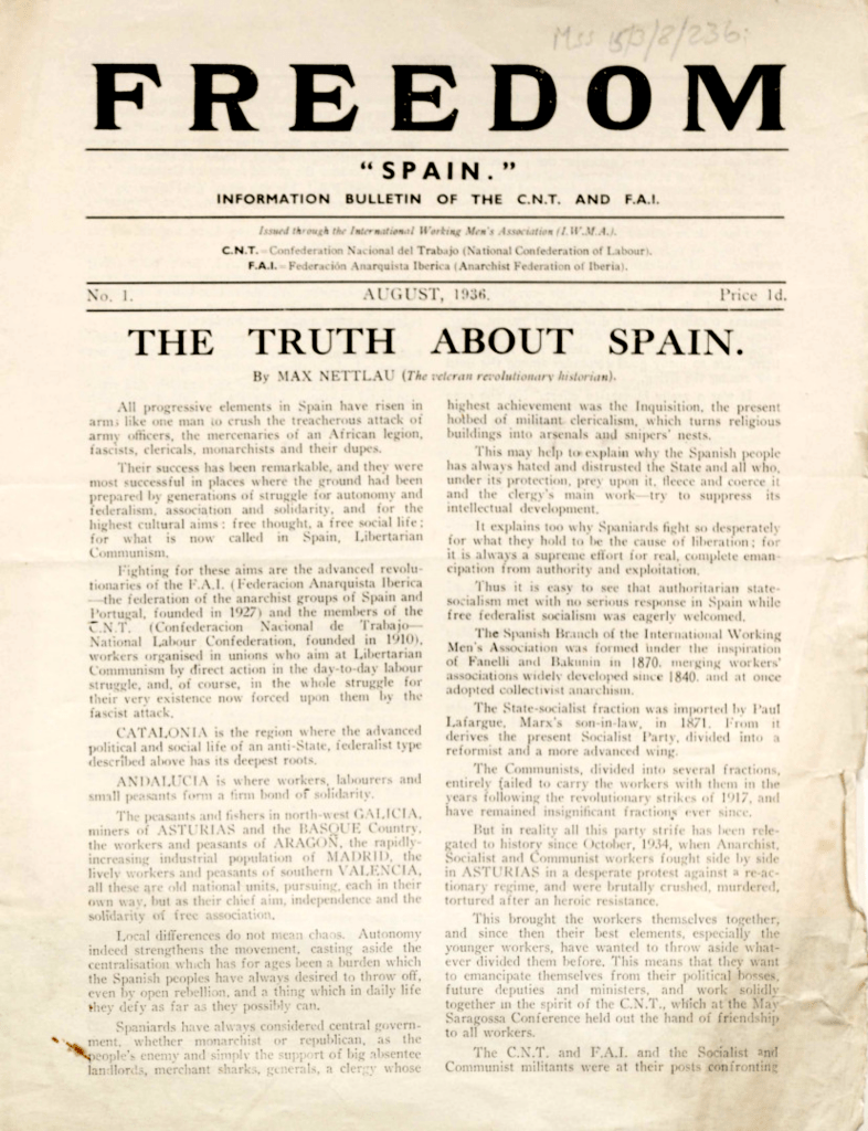 - The Spanish section of the International Workingmen’s Association, and the popularisation of Anarchism in Spain.